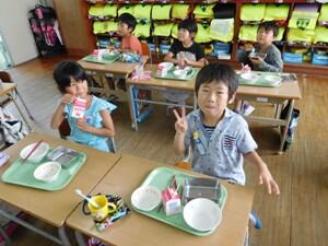 放送後、1年生の教室に行ってみました。もうほとんど食べ終わる頃でした。おいしかったですね。