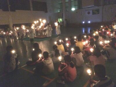 登山道、キャンドルのつどい、つどいでのバブリーダンスの様子です。