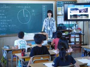 3名は、それぞれ1年1組、2年3組、3年2組に入って、先生の仕事を体験しました。