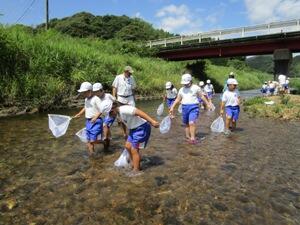 2日間とも晴天で気温の上がる中の実施となりましたが、学校から川までの行き帰りと川の中の生き物採集以外は、日陰での活動であったので、全員元気に学習することができました。