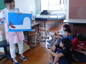今日は、トイレ清掃担当の人たちに、養護教諭から清掃の仕方の指導がありました。準備した写真を見ながら、子どもたちはどこが良くないのか考えて答えていました。トイレ清掃のポイントが具体的に分かったと思います。