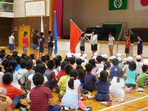学校では、9月22日(土)の運動会に向けて、昨日、結団式を行いました。