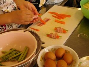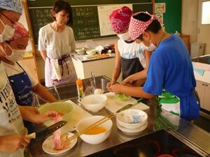 メニューは野菜炒めと卵料理。グループで考えてメニューを決めました。