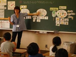 食べ物の働きについて、挿絵を使って1年生にも分かりやすく学習を進めました。