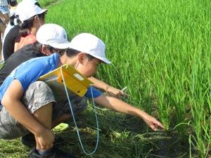 今日は、6月に田植えをした苗が、どのように成長しているか、田んぼに観察に行きました。