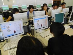 午前中は、図書室で講義や演習、午後からは、体育館で陸上運動系の実技が行われていました。暑い中、もっと授業力をアップしたいと考えて参加している先生方なので、大変熱心に活動をされていました。