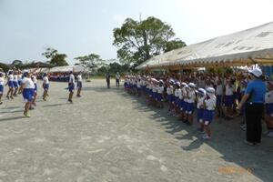 13日(木)に予行練習を行いました。全学年の徒走と団技を行いました。5・6年生の役員も一人一人自覚をもって、仕事をがんばっていました。