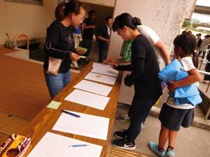 準備に来られた保護者の方が受付をしています