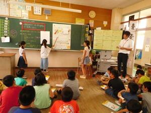 本日は、中間発表会。グループで決めた課題について調べ、模造紙にまとめたものを資料にして、発表しました。聞いている人に分かりやすいようにクイズを入れたり、動作を入れたりと、それぞれのグループ独自の工夫が見られました。聞いている子ども達も、発表者の良い点やもっと良い発表になるためのポイントを見つけて教えてあげようと、大変意欲的に授業に取り組んでいました。本番の発表会までに、改善を加えて「日向のじまん」をアピールする計画です。