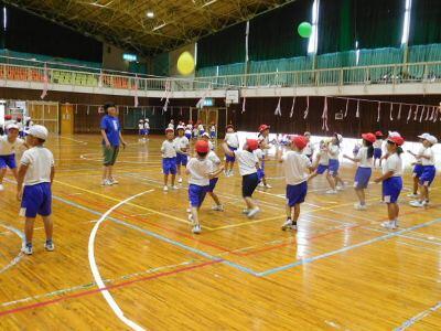 いっしょに学習をしたのは、2時間目の図工と3時間目の体育です。保育園の時のお友達もいて、今日の日をとても楽しみに来校したそうです。はじめから、にこにこ笑顔であいさつをして、いっしょに活動しました。図工は1年1組のお友達と「とびだすおもちゃ」をつくりました。体育は1年生全員と体育館で風船バレーをして楽しみました。元気いっぱい体を動かすことができました。お別れはさみしかったですね。また来てくださいね。