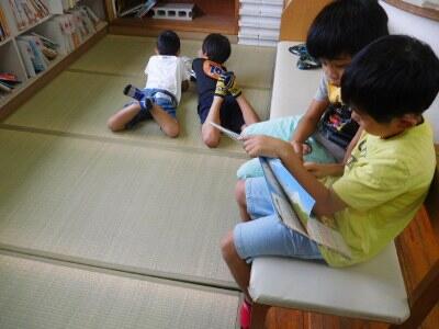 図書室に行こう 畳が新しくなったよ
