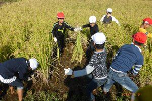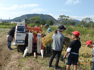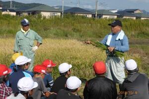 収穫した米は、今後、家庭科の学習で味わうそうです。おいしいでしょうね。