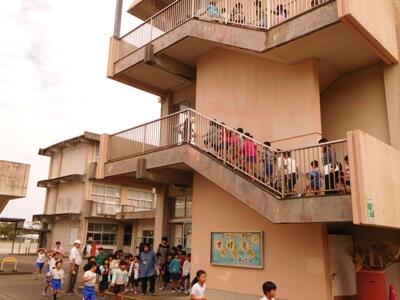 本日、給食後に「地震 津波 避難練習」を行いました。