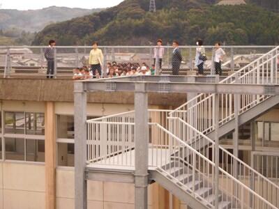 拡声器を使用して、屋上同士で人数確認を行いました。
