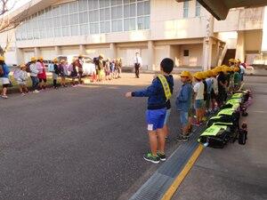 全員が避難を終了するのに5分30秒。落ち着いて行動できました。しかし、話し声もあったので、担当の先生が指導をしました。