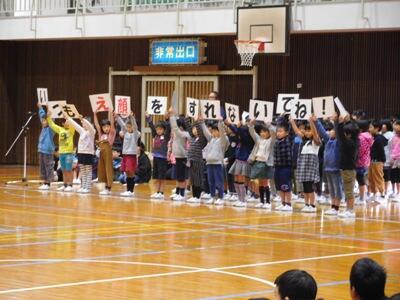集会では、各学年が工夫を凝らして、6年生の卒業を祝う発表をしました。また、企画委員会の5年生が中心となって楽しいゲームや学級対校大声大会なども行いました。別れのさみしい気持ちやみんなで盛り上がる楽しい気持ちが入り混じった1時間半でした。