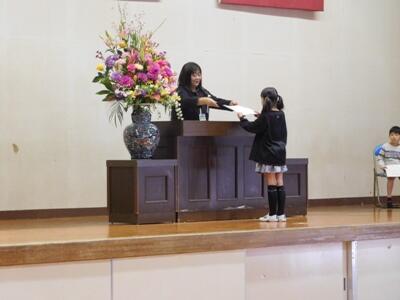 本日は、修了式で、1年~5年の代表者に修了証を渡しました。全員無事に本年度の教育課程を修了することができました。