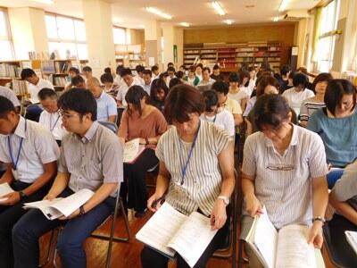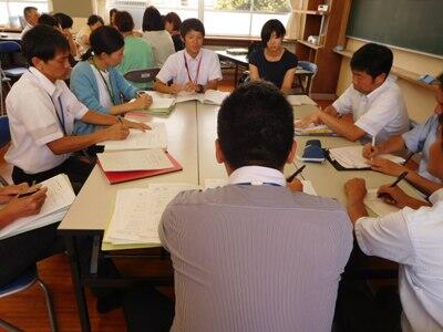 8月1日の午後、財光寺中学校で、3校合同研修会を行いました。