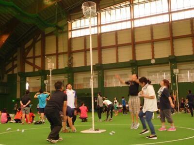 予選は15位で、敗者復活戦に進みましたが、惜しくも準々決勝にはすすむことができませんでした。高いかごに苦戦しましたが、大変楽しく、また真剣に参加することができました。親睦には、ぴったりの大会だと感じました。ほんの3・4分間の競技ですが、拾っては投げ拾っては投げで、結構筋肉痛になりました。