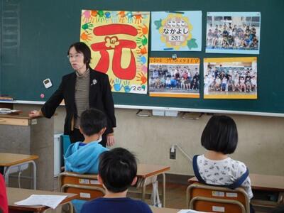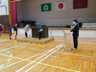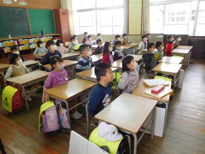 修了式は、全校放送で行いました。どの教室でも、子ども達が真剣に校長先生や生徒指導主事のお話を聞いていました。