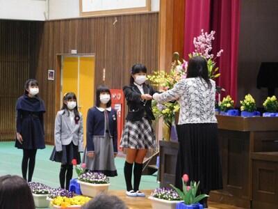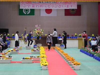 新型コロナウイルス感染予防の観点から、出席者の制限、規模の縮小等を行いましたが、久し振りに見た6年生の顔は、晴ればれとしていました。保護者と職員に見守られ、全員に無事、卒業証書を手渡すことができました。