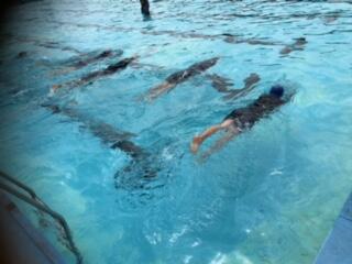 今日から、プールでの水泳学習が始まりました。新型コロナウイルス感染拡大防止のため、1学級ずつの実施にしました。今日は、6年1組と6年2組が2時間ずつ水泳学習を実施しました。これから、どの学年も実施していきます、