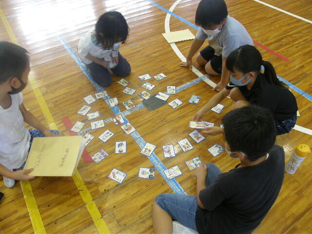 本日、4年生全員が6校時に体育館で人権学習をしました。人権擁護委員6名に来ていただきました。子どもたちには、事前に人権カルタを3つ覚えてくるように宿題が出されていました。この人権カルタは、県内の子どもたちが作った人権の標語をもとに作成されています。子どもたちは、カルタをしながら人権の大切さを学んでいました。今後、どの学年でも実施する予定です。