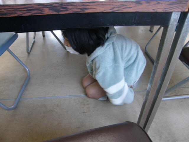 本日10時に、南海トラフと巨大地震を想定した県民一斉防災行動訓練「みやざきシェイクアウト」を実施しました。地震から身を守る訓練で、①姿勢を低く ②体・頭を守って ③揺れが収まるまでじっとして を子ども達に守らせながら、その場に応じて机の下に隠れるなどの行動を身に付けさせました。