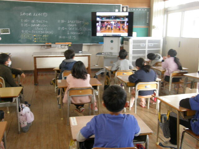 今日のお別れ遠足では、最初に6年生とのお別れ集会をしました。1年生から5年生までが、ダンスやお別れの言葉、ソーラン節などを心を込めて発表していました。事前に、各学年が動画を撮影していたものを、各教室でテレビで見ました。心温まる6年生への発表でした。