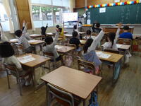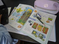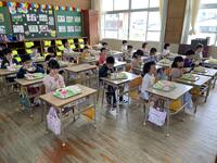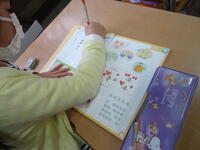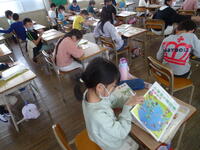 その後、新しい教科書やファイルをもらい、うれしそうに自分の名前を書き込んでいる子供たちでした。