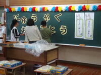 来賓に市教育委員 林 留美子様、PTA会長 河野 ひとみ 様をお迎えし、新入生71名の入学をお祝いすることが出来ました。