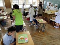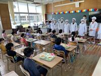 6年生が給食のお世話に来てくれ、てきぱきと準備をしてくれました。