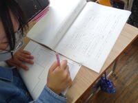 自分の生活時間を振り返り、よりよい生活時間にするための工夫を考えて、ノートに書き込んでいました。