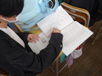 音符と休符の組み合わせによるリズムの違いを学んでいました。音符に合わせて手をたたいてリズムの違いを学んだ後、鬼滅の刃の音楽に合わせて学んだリズムで手をたたき、リズムの楽しさを味わっていました。