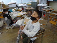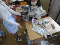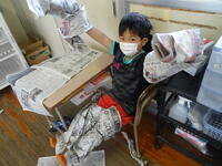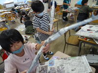 新聞紙を丸めたり、おったり、やぶいたり、つなげたり、つつにしたりといろいろな形をつくって楽しむ学習です。