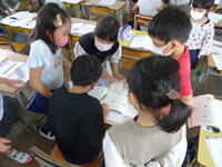 今日の4年生の算数は折れ線グラフの書き方の学習でした。表題を書くことや折れ線グラフを書くために大切な目盛りのつけかた等を話し合い、グループで書き方を相談しながら学びを深めていた4年生でした。