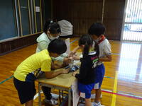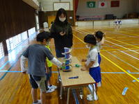 2年生は生活科で、自分たちでおもちゃを作り、1年生を招待して遊ばせてあげる学習を行っています。