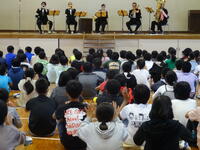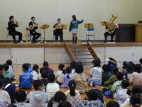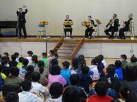 金管楽器(トランペット、ホルン、トロンボーン、チューバ)の奏でる音の美しさと迫力、音の重なりやハーモニーのすばらしさを聞くことができました。さらに、子供達に合わせた楽曲の構成で、音楽の楽しさをプレゼントしていただきました。