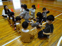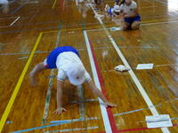5年生の子供達は、工夫された様々な運動を行いながら、身体の動かし方を楽しく学んでいました。