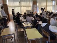 本日、さかい歯科より、酒井博史先生と歯科助手の方においでいただき、歯と歯茎の健康についての学習を行いました。酒井先生からむし歯や歯周病の怖さについて画像を見せていただきながらお話し聞きました。そして、歯科助手の方から歯磨きの仕方とフロスの使い方の説明を聞きながら、実際に歯を磨いて良い磨き方を学んでいました。