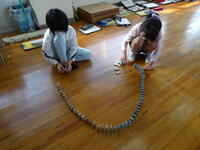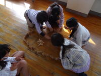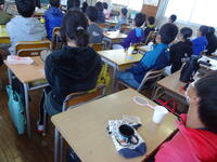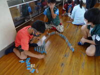 3年生をグループに分け、ドミノを作る活動の中で、お互いを大切にする心を養う学習です。失敗した人には「大丈夫」「ドンマイ」などの声かけを、上手にできて人には拍手を、心を合わせて作業することなどなど。社会生活を営む上で、大切な心の勉強でした。子供達は、楽しく活動しながらお互いを大事にする心遣いを学んでいました。