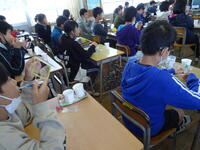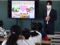 本日、南日本ハムから2名の講師をお招きし、食育の授業を行っていただきました。南日本ハムで、豚を使って食品を製造し、豚を余すことなく使い切ることで命の恵を大事にした取り組みを進めていること、好き嫌いをせず食べることがいのちを大切にすることにつながることなど大事なことをお話しいただきました。