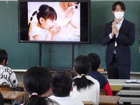 今日は、西都市立妻中学校の黒木森穂先生に来校してもらい、5年生の指導をしていただきました。