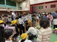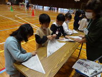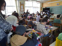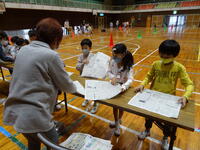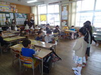 今日は1年生が、「こま」、「けん玉」、「折り紙(かぶと)」を体験する活動を行いました。1年生のために、財光寺地区から14名のボランティアの方がおいでくださいました。1年生は、コマを回せて喜んだり、けん玉を皿にのせられたことを報告に来たり、できあがったかぶとを頭にかぶってうれしそうにしていたりと夢中になって活動していました。最後に、ボランティアの方へのお礼にダンスを披露しました。