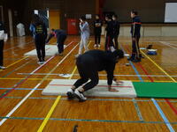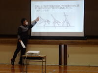 本日の放課後に、体育振興教員である妻中学校の黒木森穂先生に来ていただき、マット運動「側方倒立回転」の指導法について職員研修を行っていただきました。「回転加速技術」「立ち上がり技術」の2点を柱に実際に身体を動かしながら研修を進めていただき、指導する際に児童の様子のどこに着目し、どんな動きを練習させると効果があるのか等お話しをいただきました。今後の実践につながる研修になりました。