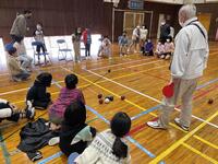 市の社会教育指導員の福島哲二(元財光寺南小校長)先生をはじめ4名の指導員の方々が来校していただきました。「ボッチャ」のゲームを行いながら、身体の不自由な人の気持ちを考え、相手を大切にする行動の仕方、お互いを思いやる心の大切さを学んでいました。