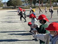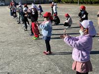 前回し跳びを1分間続けることができた学級の人数の割合での競争をしたり、学級を6~8人ずつのチームに分け、チーム対抗戦で長く飛び続ける競争をしたりしました。どの児童も縄跳びの技術が向上していました。体力がついてきている児童も多くいました。これから寒くなりますが、寒さ日負けず縄跳び運動で身体を鍛えてほしいと思います。