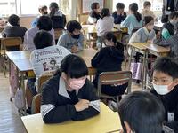 本日は5年生のみやざき学習状況調査日でした。2時間目に国語、3時間目に算数のテストを行いました。真剣に問題に取り組んでいた5年生でした。