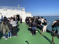 新造船「たかちほ」に乗船し、船内の設備を見学しました。船の大きさ・施設の立派さに驚きながら、熱心に見学していました。