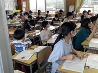 今日は、3年生の音楽、1年生の体育、5年生の外国語の学習を紹介します。どの学年も、楽しく真剣に学習していました。